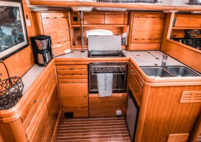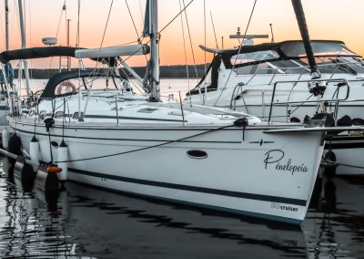 Serenity is a five cabin Bavaria C50 2005 Sail boat. Serenity sails eleqantly and behaves well in the weather. She has five cabins, 3 heads, plenty of storage and adequate headroom. Three cabins has double beds and two bunk beds. The galley has gas stove & oven and good cooking utensils.
