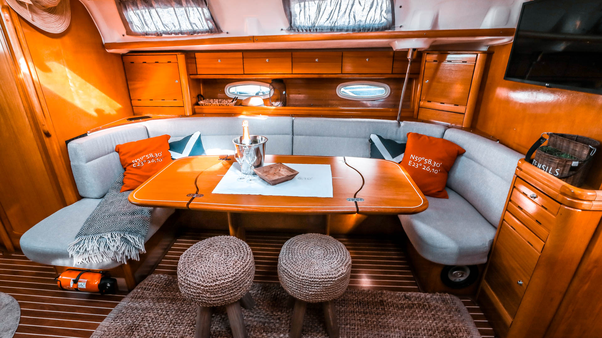 Onboard equipment includes outdoor shower, inverter, radar, inflatable tender and two SUP boards.